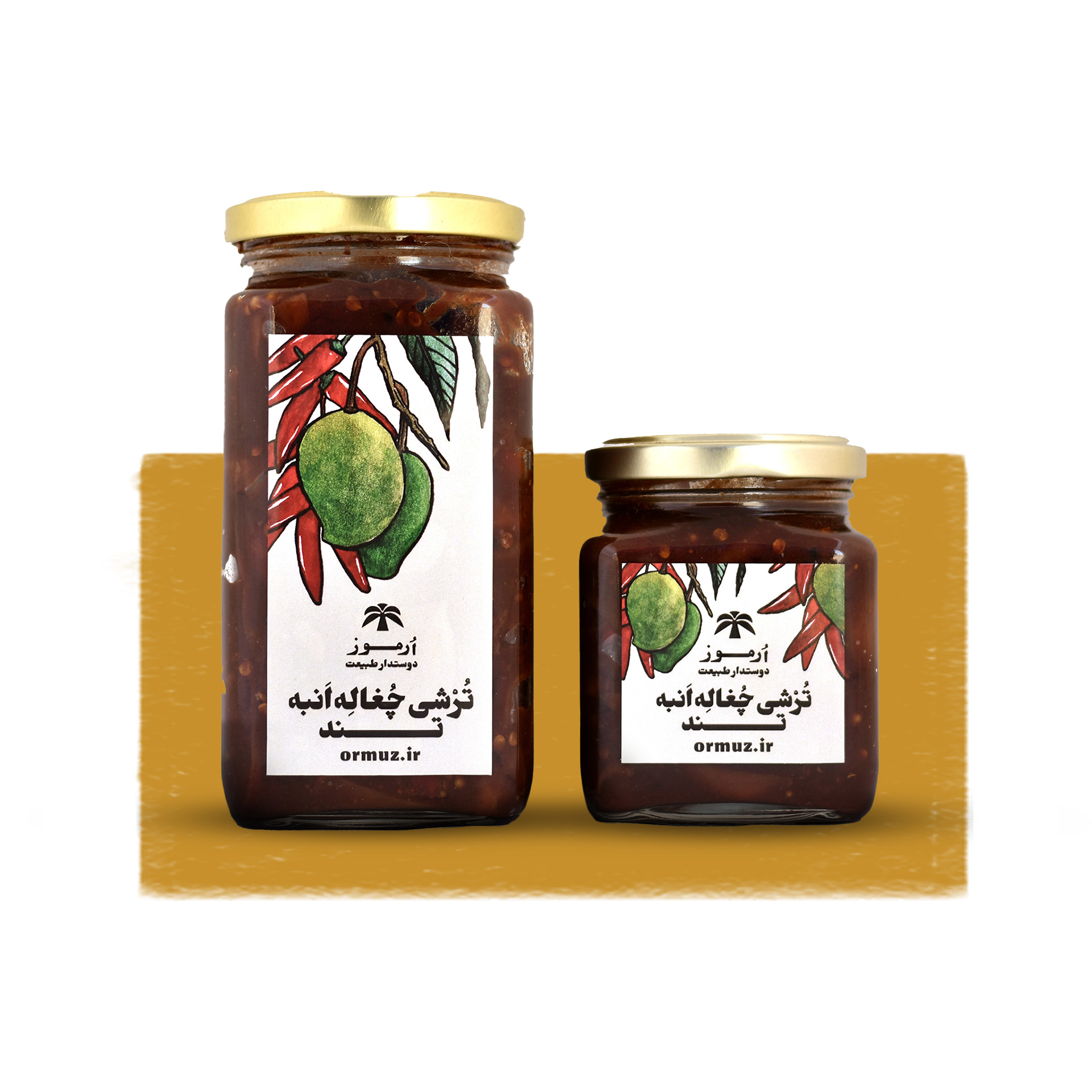 انبه کال، سرکه خرما، ادویه، نمک، سیر، فلفل قرمز